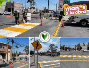 Las acciones incluyeron la colocación de boyas, así como la aplicación de pintura en pasos peatonales, rampas y guarniciones, con el objetivo de mejorar la seguridad de estudiantes, docentes y peatones que transitan por la zona.